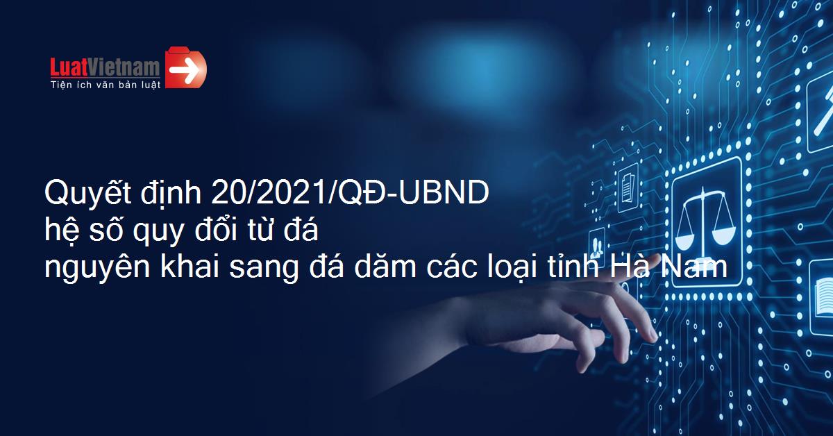Quyết định 20/2021/QĐ-UBND của Ủy ban nhân dân tỉnh Hà Nam về việc quy định hệ số quy đổi từ đá nguyên khai sang đá dăm các loại trên địa bàn tỉnh Hà Nam