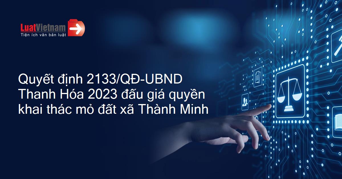 Quyết định 2133/QĐ-UBND Thanh Hóa 2023 đấu giá quyền khai thác mỏ đất xã Thành Minh