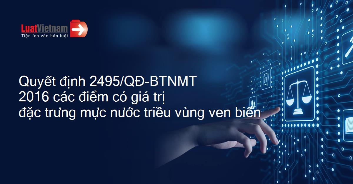 Quyết định 2495/QĐ-BTNMT 2016 các điểm có giá trị đặc trưng mực nước triều vùng ven biển