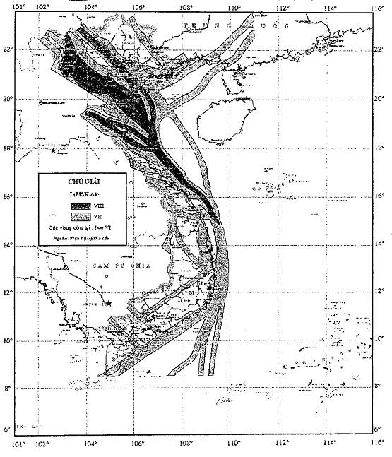 BẢN ĐỒ PHÂN VÙNG ĐỘNG ĐẤT TRÊN LÃNH THỔ VIỆT NAM VÀ VÙNG PHỤ CẬN