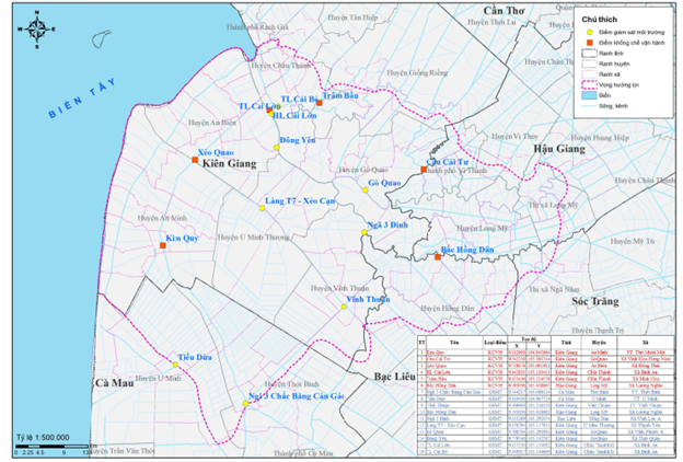 Trong quá trình vận hành sử dụng 07 trạm khống chế vận hành bao gồm: Mực nước trạm Châu Đốc, nồng độ mặn tại các trạm: Trâm Bầu, Cầu Cái Tư, Hạ lưu cống Cái Lớn, Xẻo Quao, Kim Quy và Bắc Hồng Dân; và các trạm đo thượng lưu các cống trong hệ thống cũng được sử dụng khống chế mực nước khi vận hành. Ngoài ra, các trạm giám sát môi trường cũng được đưa vào làm trạm giám sát.
