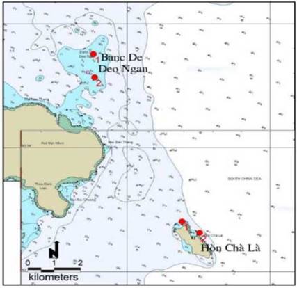 A. Vị trí các khu vực dự kiến lặn khảo sát thu mẫu tại các bãi ngầm