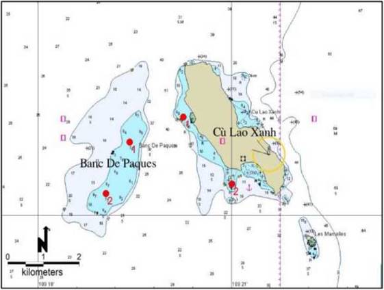 | 12 | Bãi Cạn De Paques 2 | 109.31762° | 13.60506° | 8,5 | ||