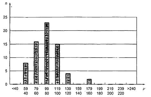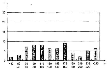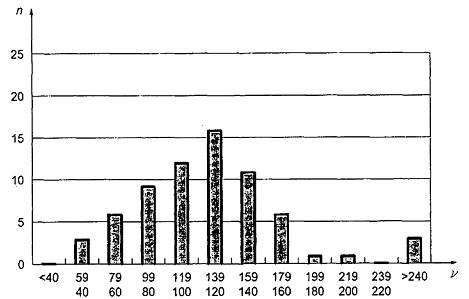 Hình C.2 - Số lượng kết quả trong dải nồng độ khác nhau khi lấy mẫu 50 l; Các kết quả không phân bố chuẩn