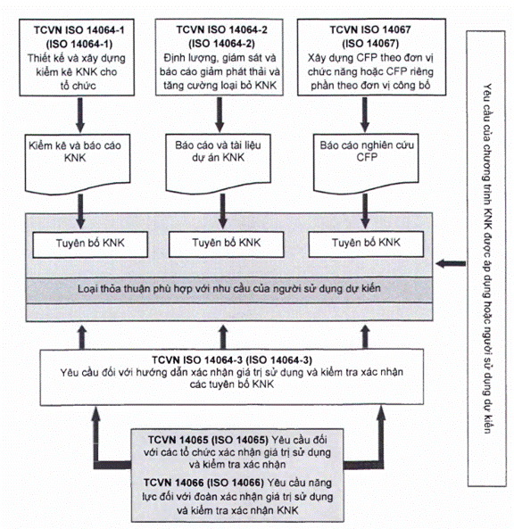 Hình 1 - Mối quan hệ giữa các tiêu chuẩn KNK của nhóm TCVN ISO 14060 (ISO 14060)