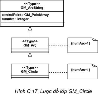 c) Tên của kiểu đối tượng địa lý được sử dụng trong khai báo là tên lớp UML.