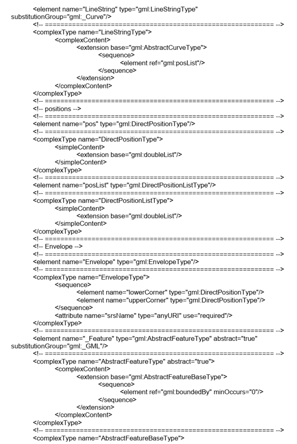 a) Lớp có kiểu mẫu phân loại là <<FeatureType>> trong lược đồ ứng dụng UML được chuyển tương ứng thành khai báo kiểu đối tượng địa lý trong lược đồ GML.