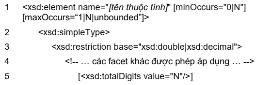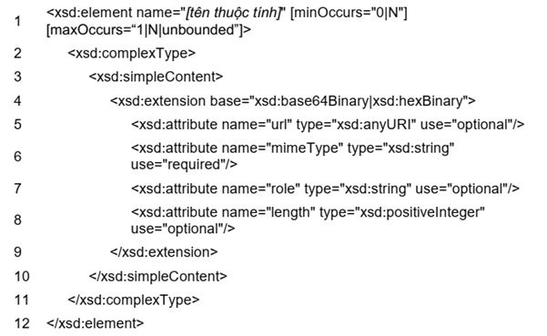 Số phần thể hiện của thuộc tính được chuyển đổi thành giá trị của cặp thuộc tính minOccurs và maxOccurs khi khai báo phần tử XML. Nếu số thể hiện là số nguyên thì chuyển tương ứng, n được chuyển thành giá trị xml: unbounded.