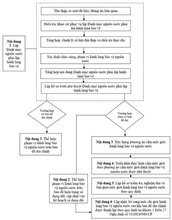 3. Nội dung thực hiện xây dựng phương án cắm mốc giới hành lang bảo vệ nguồn nước, bao gồm: