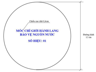 Biển mốc làm bằng sứ, nền trắng, hình tròn, đường kính 12 cm, bề dầy 3,8cm và có khả năng chịu lực tốt. Nội dung biển ghi chữ in hoa, màu xanh, mã màu R,G,B=0,0,255, chiều cao chữ 0,6 cm, cách thể hiện như hình số 2.