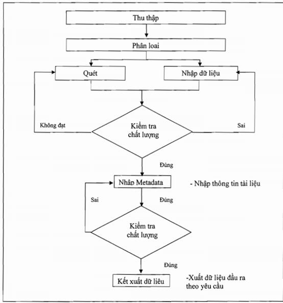 Thu thập nội dung thông tin dữ liệu cần số hóa (xác định đối tượng quản lý, thông tin về mô hình quản lý cơ sở dữ liệu, xác định mức độ bảo mật của cơ sở dữ liệu, xác định các yêu cầu về độ chính xác của cơ sở dữ liệu, xác định yếu tố ngôn ngữ trong cơ sở dữ liệu, dự kiến khối lượng dữ liệu đưa vào cơ sở dữ liệu).