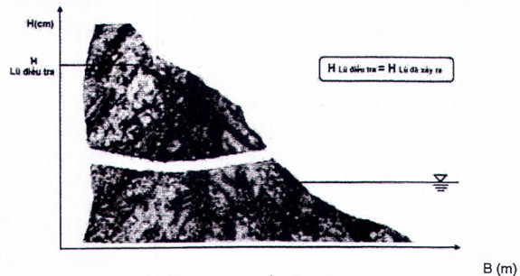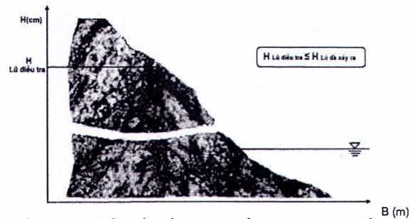 Công nhận độ cao của vết lũ trên vật thể bằng mực nước đỉnh lũ điều tra.