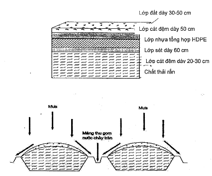 Lớp đất hoặc vật liệu phù hợp được phủ lên trên toàn bộ bãi chôn lấp trong quá trình vận hành và khi đóng bãi nhằm ngăn ngừa các tác động bất lợi từ ô chôn lấp đến môi trường xung quanh và từ bên ngoài vào ô chôn lấp.