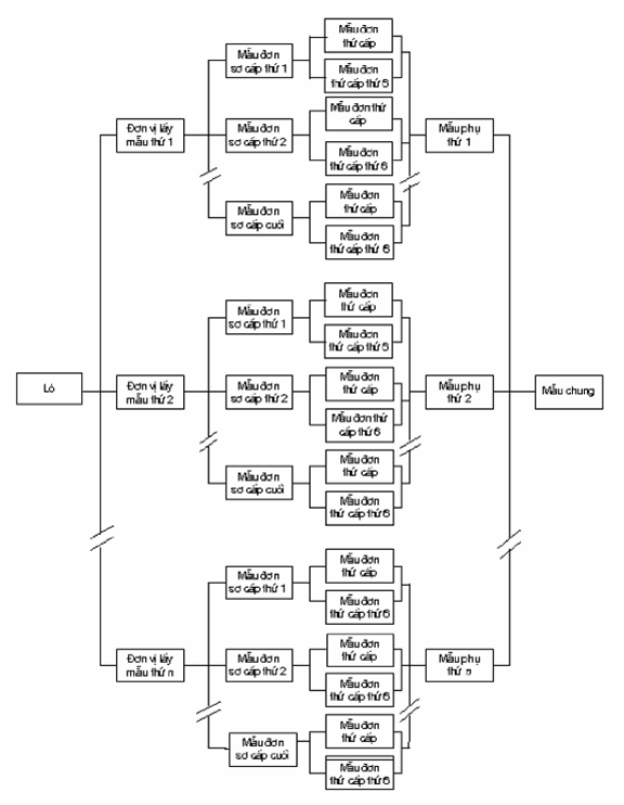 CHÚ THÍCH 2 - Các mẫu đơn được lấy vào các hộp theo kiểu quay vòng luân phiên để có được các mẫu lặp lại có khối lượng gần bằng nhau.