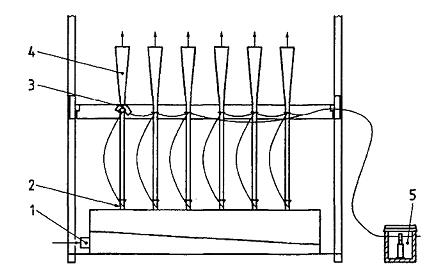 Việc thiết lập một thang so sánh là rất quan trọng. Lưu lượng và nồng độ của chất mùi tham chiếu cần phải là không đổi và không phụ thuộc vào các điều kiện môi trường xung quanh. Độ ẩm tương đối và nhiệt độ của hỗn hợp không khí và chất mùi tham chiếu cần được giữ không đổi. Sơ đồ của một thang so sánh khả dĩ được đưa ra trong hình D.1. Thang so sánh này có sáu tác nhân kích thích khác nhau bằng phương tiện của các chiếc phễu. Chất mùi tham chiếu là axeton. Thang so sánh được tạo thành từ ba phần cơ bản: ống dẫn khí mẫu, nguồn axeton, và thiết bị chia liều lượng. Chỉ các vật liệu với phát thải và hấp thụ mùi rất thấp, chẳng hạn như thép, thủy tinh, và polytetrafluoroetylen [PTFE) được sử dụng cho các bộ phận có tiếp xúc với không khí mẫu, để tránh ảnh hưởng đến các tác nhân kích thích. Thang so sánh được kết nối với một nguồn cung cấp không khí mùi trung tính.