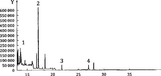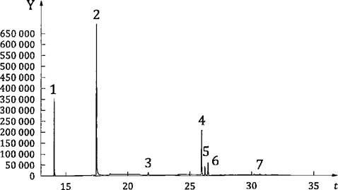 Hình B.1 - Sắc đồ của dung dịch chuẩn este axit phosphoric (phân giải thấp) đối với phép đo không khí trong buồng thử