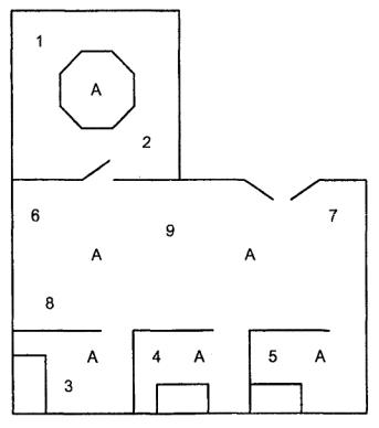 Hình D.1 - Ví dụ về phác thảo các vị trí lấy mẫu không khí