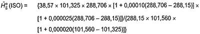 W(ISO) = W(T1,T2,p1,p2)x[101,325T2/288,15p2]x[1 + 0,00010(T1 -288,15)]x {[1 + 0,000020 (p2 -101,325)] / [1 + 0,000036 (T2- 288,15)]} (B.21)