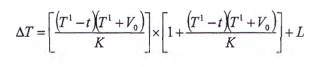 Hiệu chính số đọc, tính theo độ celsius, trên nhiệt kế đảo chiều cho những thay đổi do chênh lệch giữa nhiệt độ khi đảo chiều và nhiệt độ tại thời điểm đọc. Hiệu chính số đọc được cộng đại số vào kết quả đọc chưa chính xác và được tính theo Công thức sau: