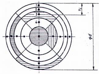 Với những ống dẫn tròn mà cần tăng số đường lấy mẫu (đường kính) hoặc số điểm lấy mẫu, công thức tiếp tuyến (B.6) và (B.7) là để tính khoảng cách từ thành ống dẫn dọc theo đường kính là: