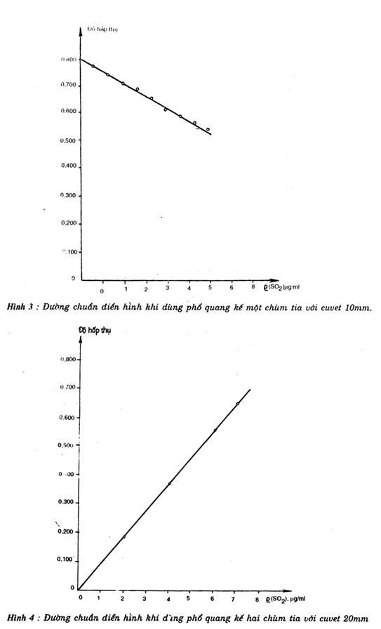 Lập đường chuẩn bằng cách vẽ đồ thị của độ hấp thụ của dung dịch chuẩn (bao gồm cả dung dịch trắng nếu dùng phổ quang kể một chùm tia) theo nồng độ của lưu huỳnh dioxit của các dung dịch tiêu chuẩn (8.l .l) hoặc theo chênh lệch độ hấp thụ so với dung dịch trắng (phổ quang kế hai chùm tia) (xem hình từ 2 đến 5). Phải lập đường chuẩn mới mỗi khi pha mới dung dịch thorin và dung dịch ban nerclorat/dioxan.