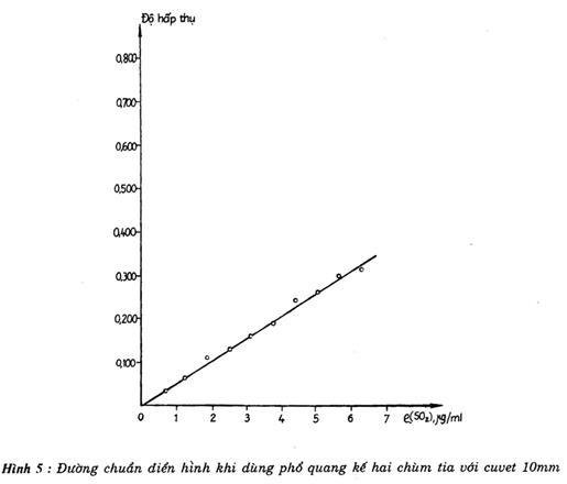 Để có độ chính xác cao; chỉ dùng phần tuyến tính của đường chuẩn, nghĩa là các nồng độ SO từ 0 đến 6Pg/ml.