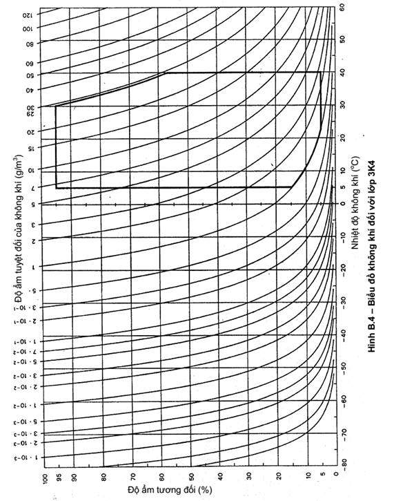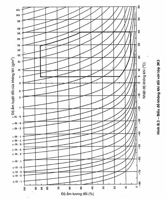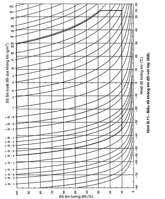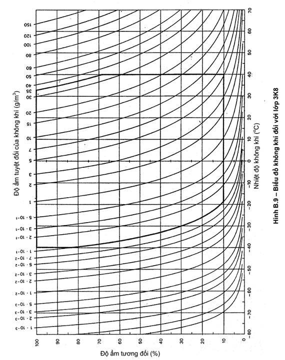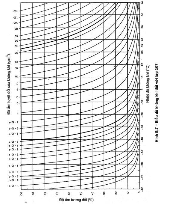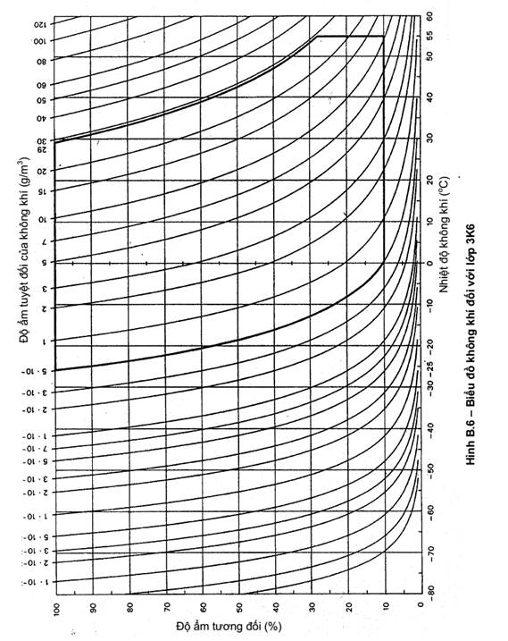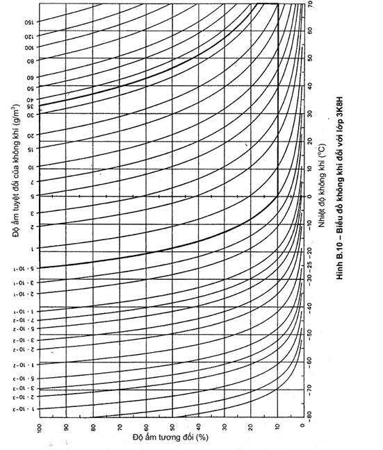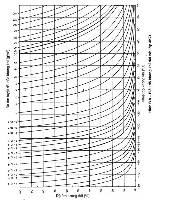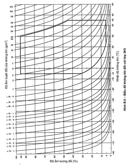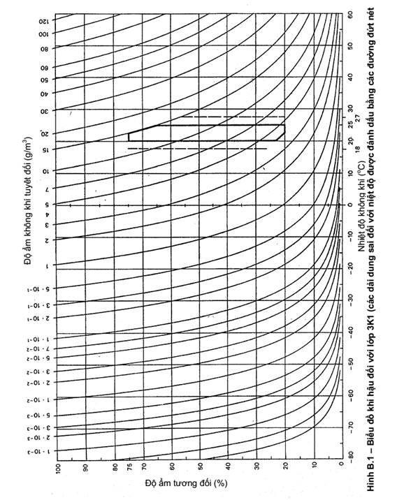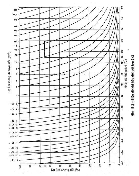 Phụ lục B bao gồm một biểu đồ khí hậu cho thấy sự phụ thuộc lẫn nhau giữa nhiệt độ, độ ẩm tương đối và độ ẩm tuyệt đối của không khí đối với các loại khí hậu được qui định trong Bảng 1.