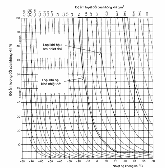 Sự phụ thuộc lẫn nhau thực tế giữa nhiệt độ và độ ẩm không khí không thể được biểu diễn chỉ bằng việc qui định các điều kiện khắc nghiệt. Các biểu đồ khí hậu được đưa ra trong Phụ lục B.