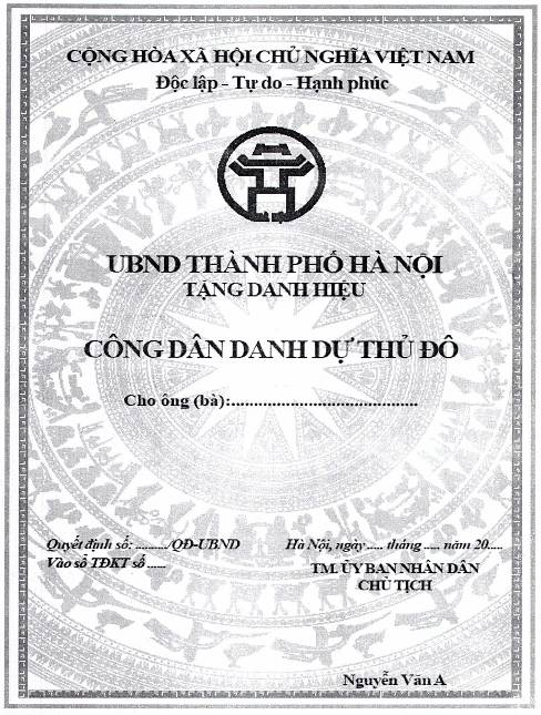 MẪU BẰNG CÔNG NHẬN CÔNG DÂN DANH DỰ THỦ ĐÔ
