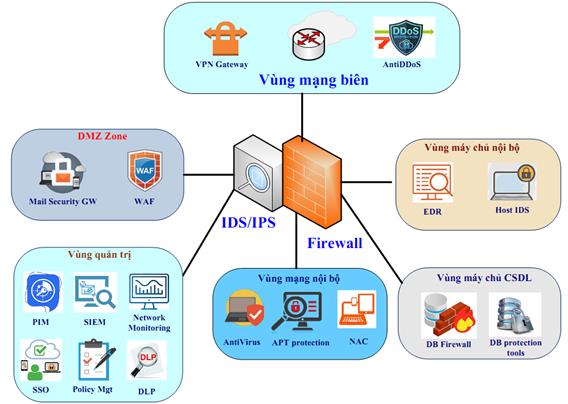 | 9 | Mạng riêng ảo (VPN) | Phần mềm/phần cứng | - Tạo kênh kết nối riêng giữa các thiết bị, hệ thống mạng có mã hóa đường truyền - Chống các loại hình tấn công, nghe lén thông tin trên đường truyền - Xác thực các đối tượng tham gia trao đổi thông tin |