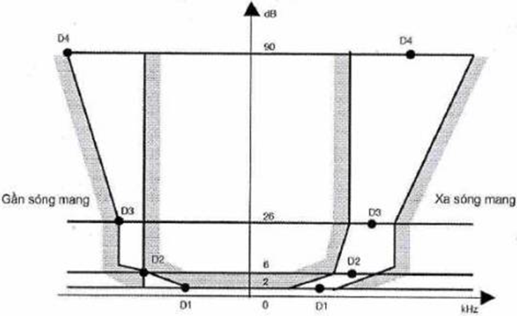 Bộ lọc IF phải nằm trong giới hạn của đặc tính chọn lọc được thể hiện trong Hình A.2.