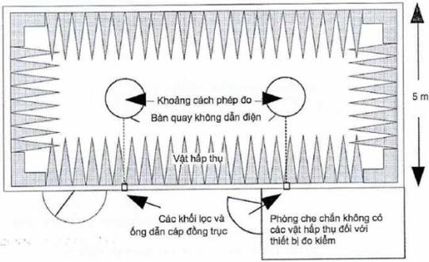 Đối với các phép đo lên tới 127,75 GHz, có thể sử dụng khoảng cách đo theo trục dọc giữa phòng đo là từ 3 m đến 5 m. Cấu trúc của phòng đo loại này được mô tả như dưới đây.