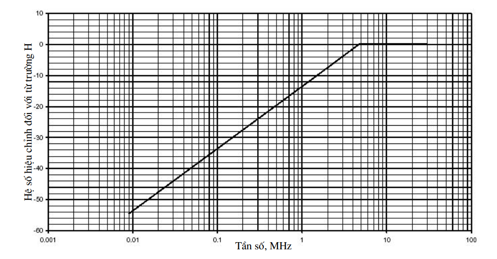 | Dải tần (MHz) | Giới hạn cường độ trường H (Hf) dBmA/m tại 30 m |