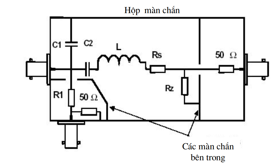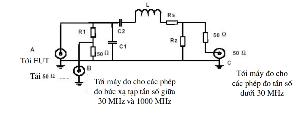 Điện trở R1 cùng với điện trở tải 50 W tạo ra suy hao tín hiệu đầu ra EUT tại đầu nối B được sử dụng cho các phép đo phát xạ giả dẫn giữa 30 MHz và 1 GHz.