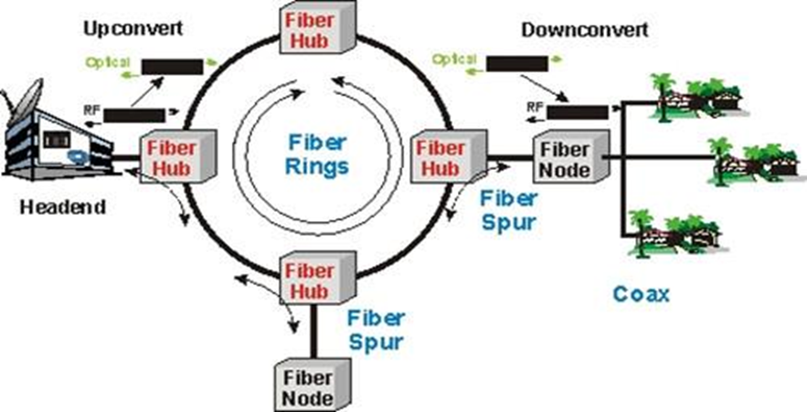 Tín hiệu cao tần (RF) tổng hợp của tín hiệu hình và tín hiệu tiếng đi kèm được điều chế bằng kỹ thuật tương tự và được truyền dẫn trên mạng cáp đến thiết bị thu hình tương tự của thuê bao.