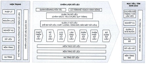 Dựa trên tầm nhìn và mục tiêu, cũng như phân tích hiện trạng, khung Chiến lược dữ liệu sẽ bao gồm các luồng chiến lược, trong đó: