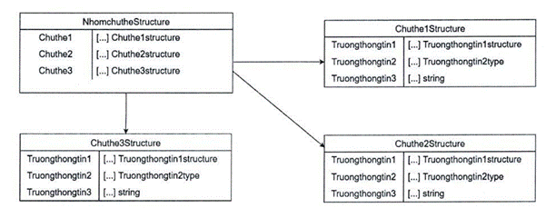 Thêm hậu tố Structure vào cuối tên của cấu trúc trong mô hình dữ liệu và định nghĩa dưới dạng Complex Type trong lược đồ XML.