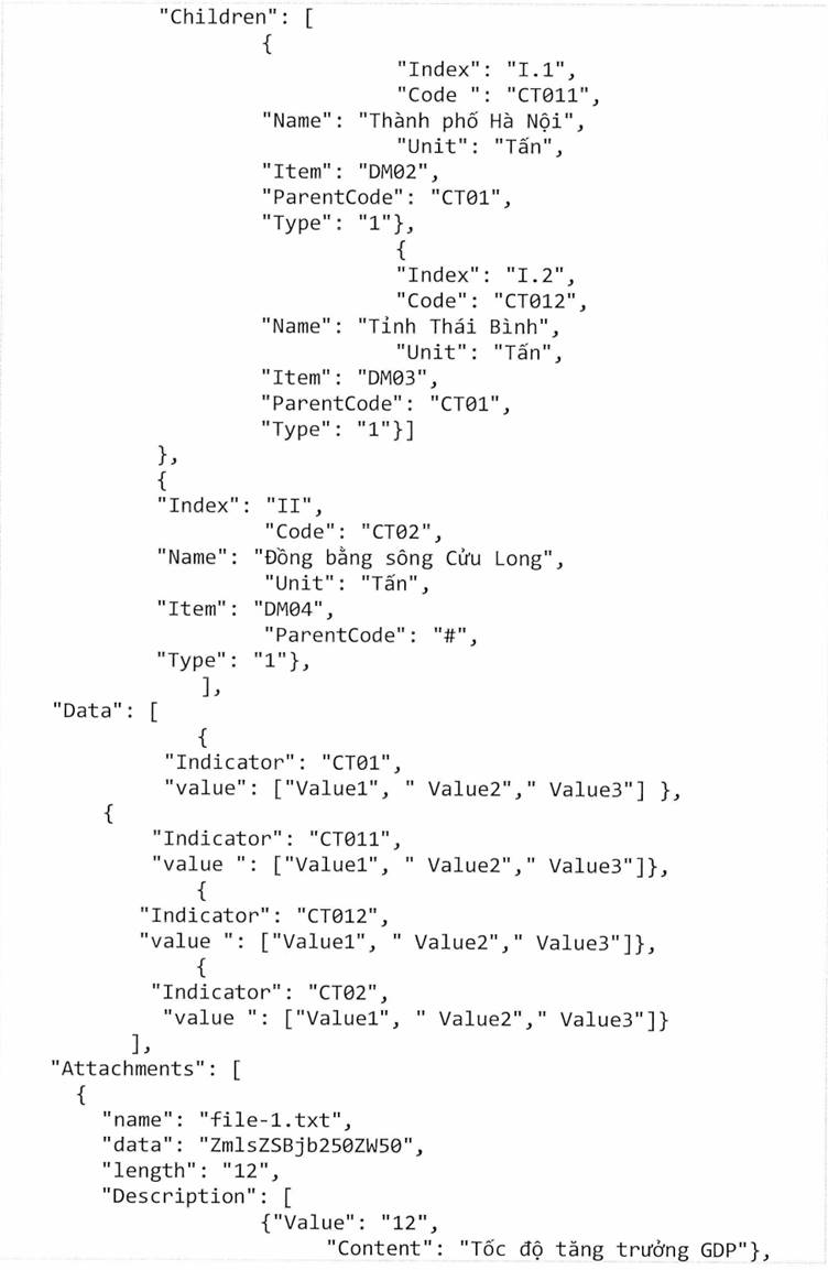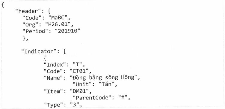 | 4 | Gói tin dữ liệu chỉ số | Chữ ký số của người có thẩm quyền ban hành báo cáo/cơ quan ban hành báo cáo |
