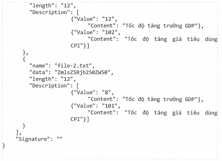 | 2.4 | “signature” | Giá trị chữ ký số, được mã hóa dưới dạng BASE64URL |