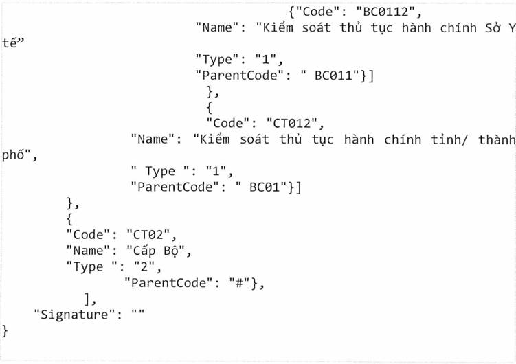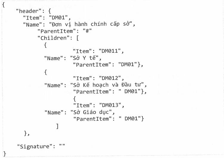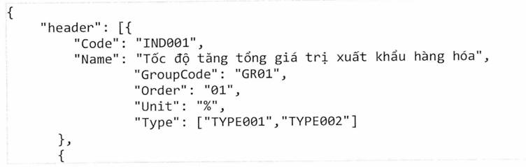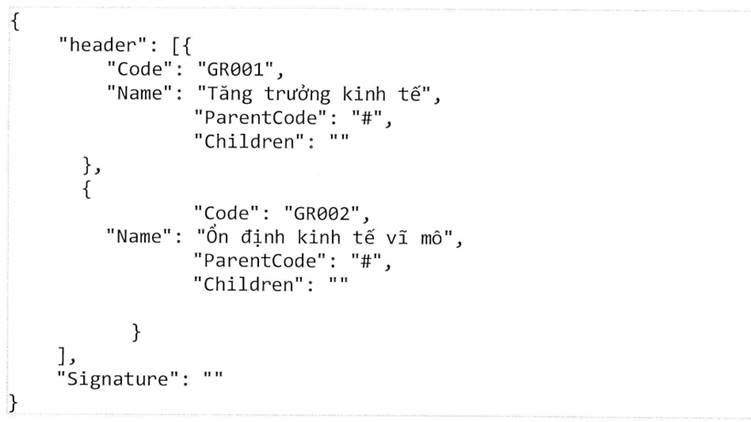 2.1.11. Cấu trúc, định dạng dữ liệu gói tin danh mục nhóm chỉ số