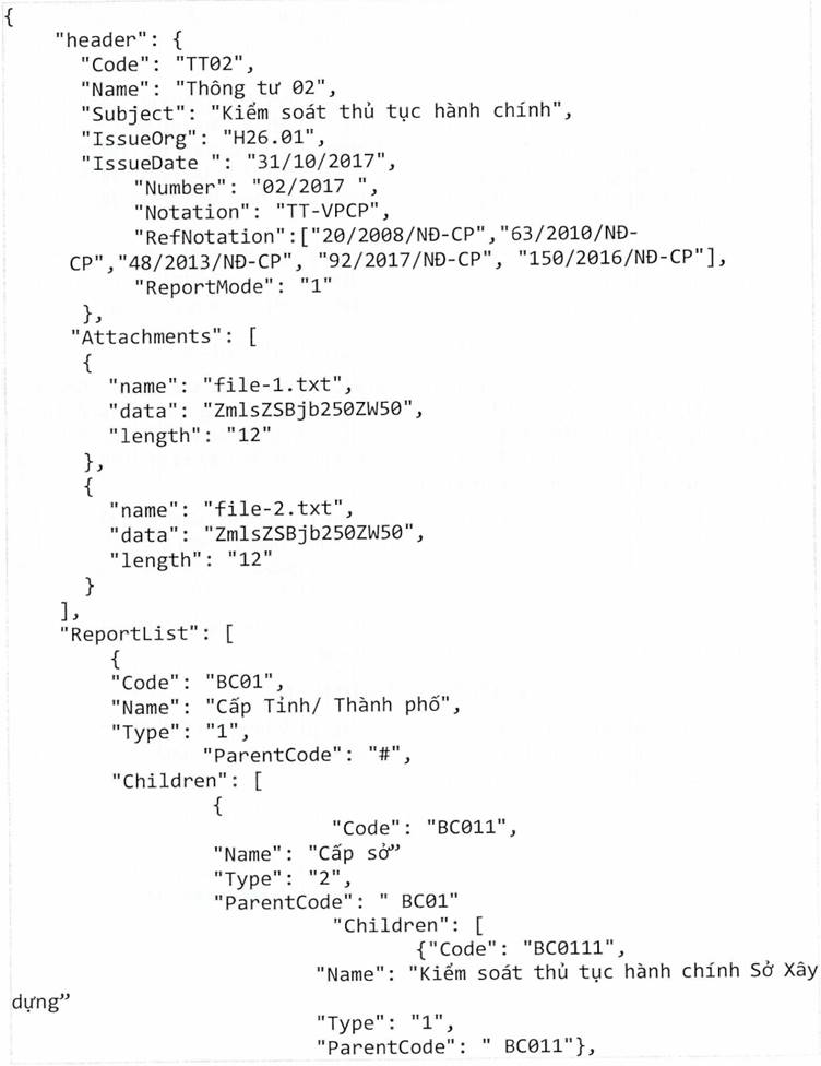 Đây là ví dụ minh họa định dạng, giá trị các trường thông tin gói tin biểu mẫu báo cáo đề cương được mô tả trong Bảng 7 để các cơ quan, đơn vị tham khảo: