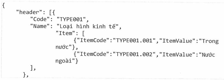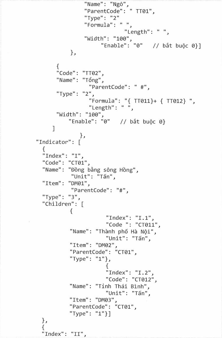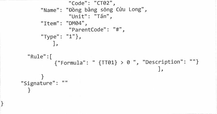 2.1.5. Cấu trúc, định dạng dữ liệu gói tin số liệu báo cáo danh sách