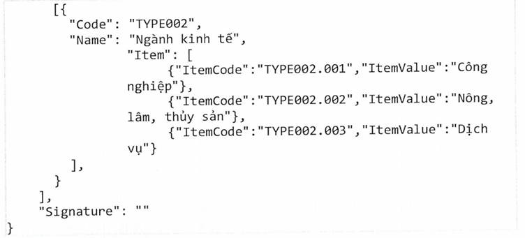 A.9. Ví dụ minh họa gói tin danh mục chỉ tiêu báo cáo