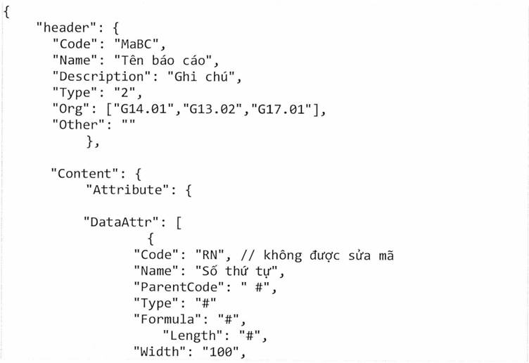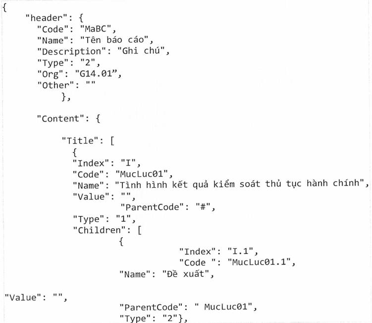2.1.2. Cấu trúc, định dạng dữ liệu gói tin biểu mẫu báo cáo