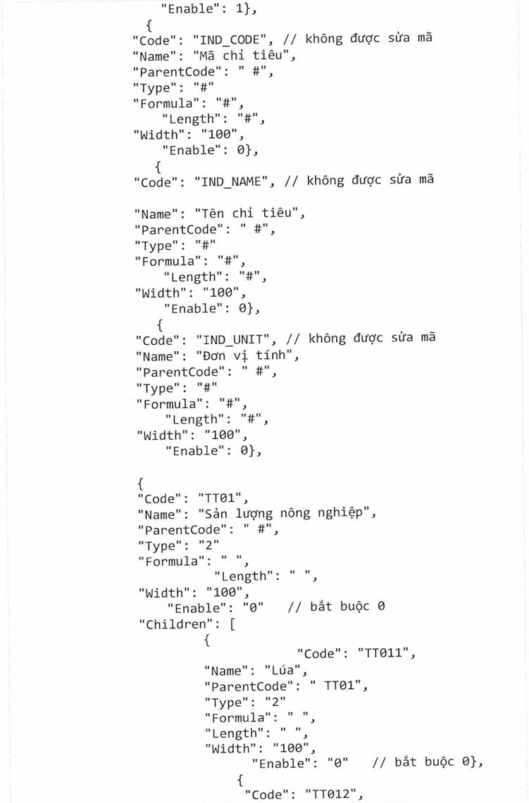 2.1.12. Cấu trúc, định dạng dữ liệu gói tin danh mục phân tổ chỉ số