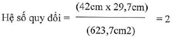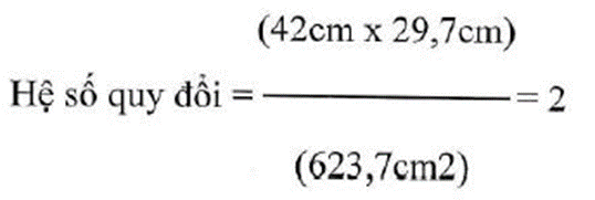 Hệ số quy đổi = Diện tích (cm2) của trang báo in cần quy đổi chia (:) cho diện tích tiêu chuẩn của trang báo in kích cỡ A4 (623,7cm2).