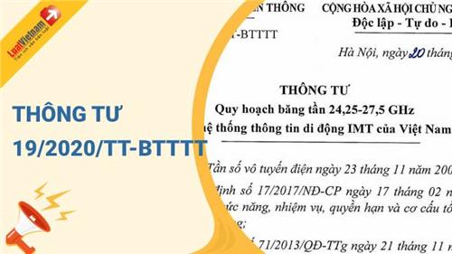 Ngày 20/8/2020, Bộ Thông tin và Truyền thông ban hành Thông tư 19/2020/TT-BTTTT của về việc quy hoạch băng tần 24,25-27,5 GHz cho hệ thống thông tin di động IMT của Việt Nam.