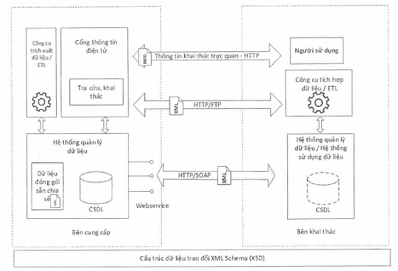 - Thực hiện theo các quy định, hướng dẫn về: nguyên tắc xây dựng, quản lý, khai thác, bảo vệ, duy trì cơ sở dữ liệu tại Nghị định số 64/2007/NĐ-CP ngày 10/4/2007 của Chính phủ về ứng dụng công nghệ thông tin trong hoạt động của cơ quan nhà nước; tiêu chuẩn kỹ thuật tại Thông tư số 39/2017/TT-BTTTT ngày 15/12/2017 của Bộ trưởng Bộ Thông tin và Truyền thông ban hành Danh mục tiêu chuẩn kỹ thuật về ứng dụng công nghệ thông tin trong cơ quan nhà nước; Phụ lục 03 ban hành kèm theo Thông tư này về hướng dẫn liên thông, trao đổi dữ liệu có cấu trúc bằng ngôn ngữ XML giữa các hệ thống thông tin trong cơ quan nhà nước.