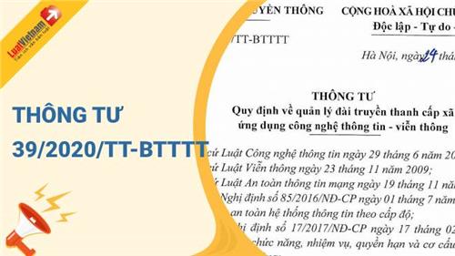 Ngày 24/11/2020, Bộ Thông tin và Truyền thông ban hành Thông tư 39/2020/TT-BTTTT về việc quy định về quản lý đài truyền thanh cấp xã ứng dụng công nghệ thông tin - viễn thông.