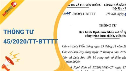 Ngày 31/12/2020, Bộ Thông tin và Truyền thông ra Thông tư 45/2020/TT-BTTTT về việc ban hành Định mức khảo sát để lập dự án công trình bưu chính, viễn thông.